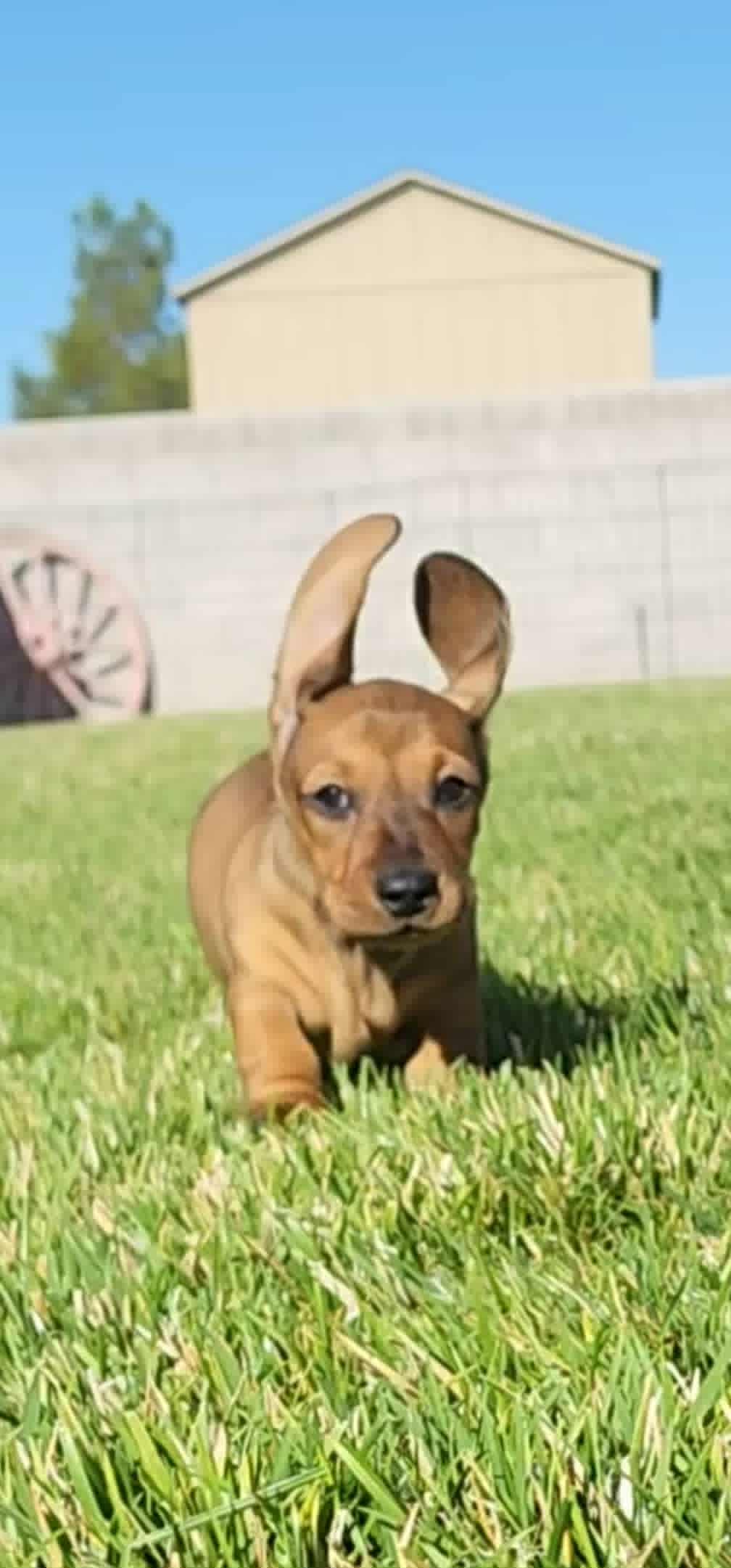 Charlie is a singlet puppy who has gotten all the one on one attention from the beginning. Companion quality, super smart and sweet. Very biddible.